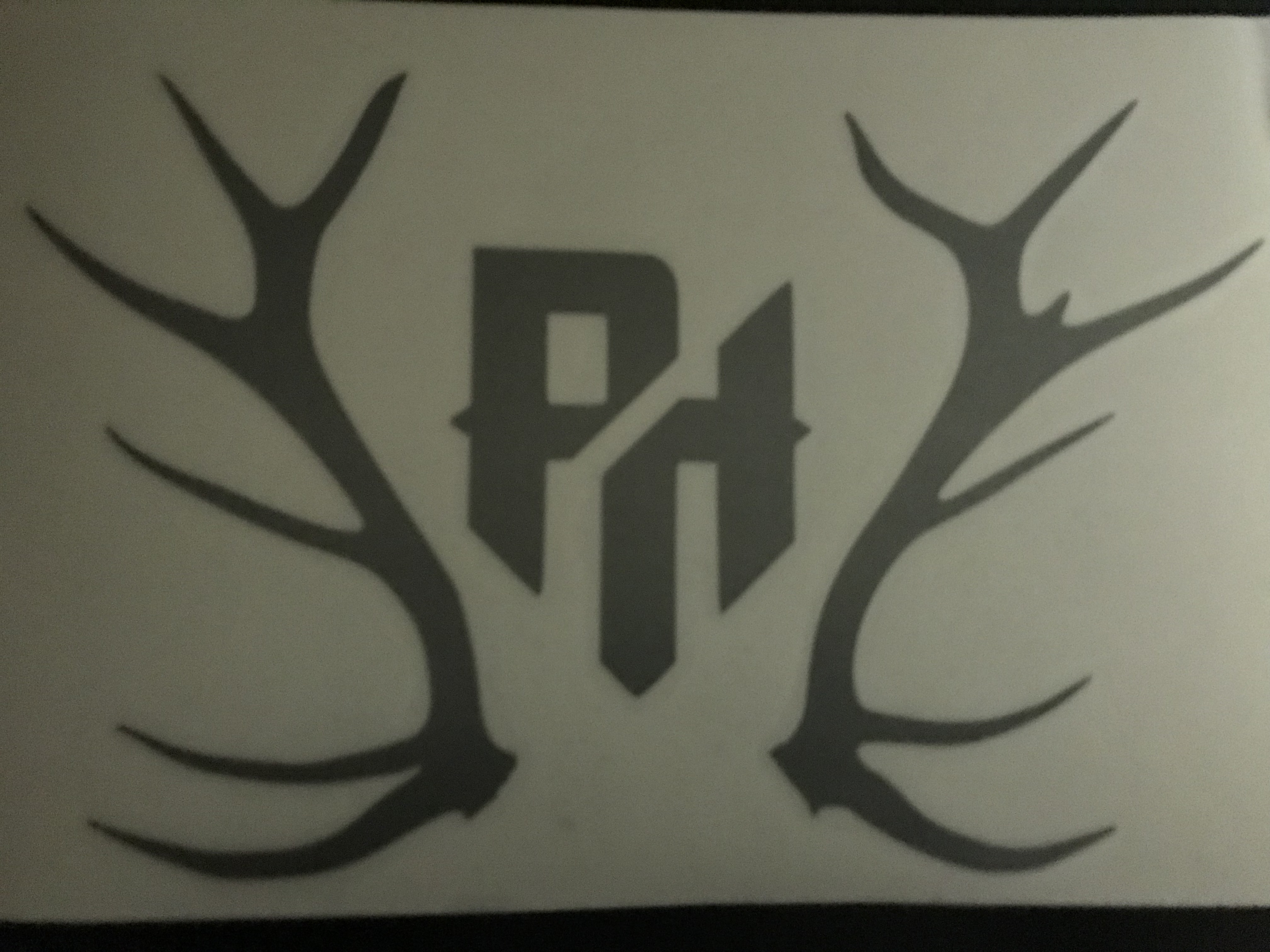 Silver Metallic Pure Hunting stickers with "PH" and Antlers. These stickers look awesome on a trucks glass or top of a computer! Available in 3x5 or 5x8