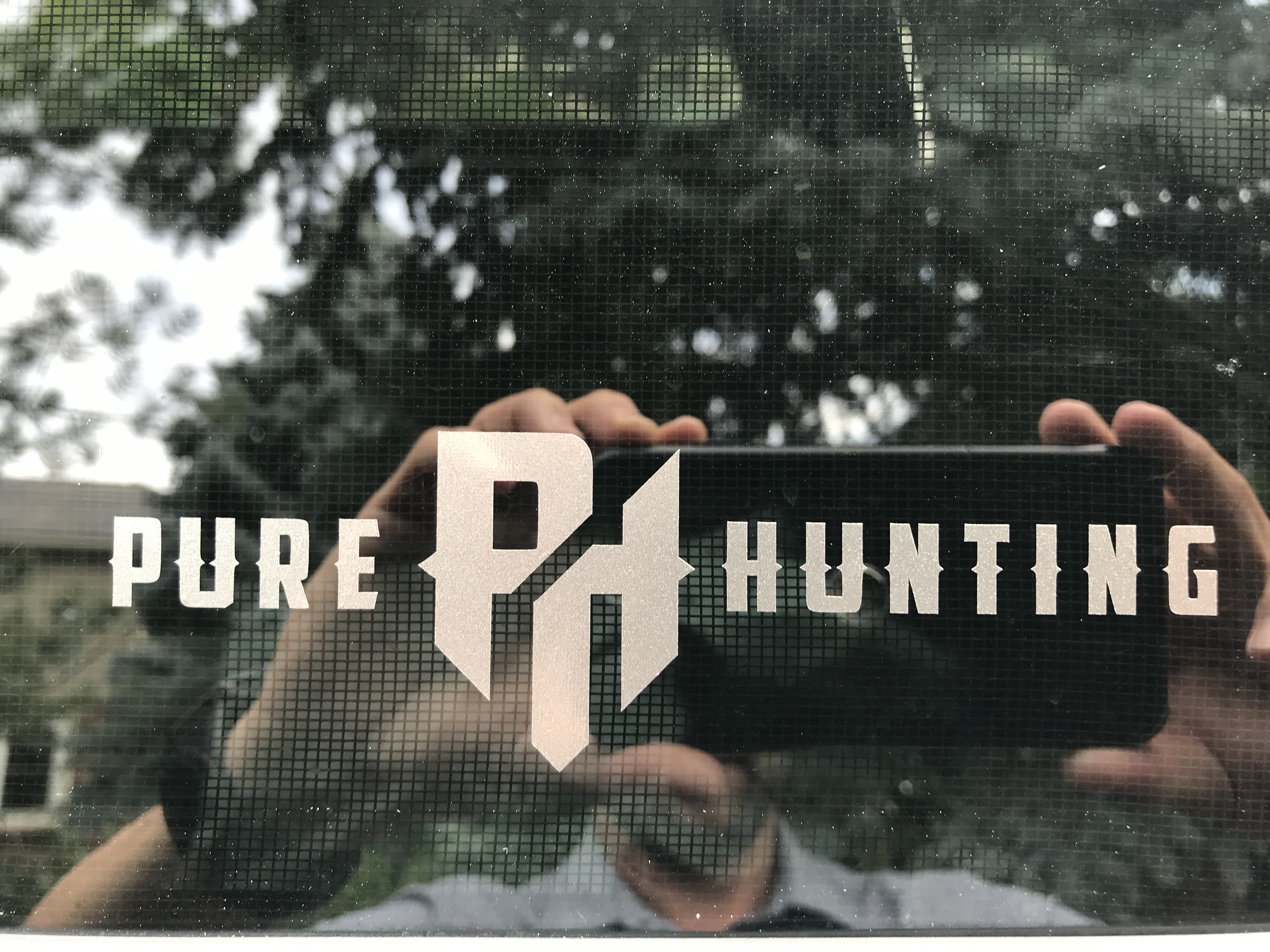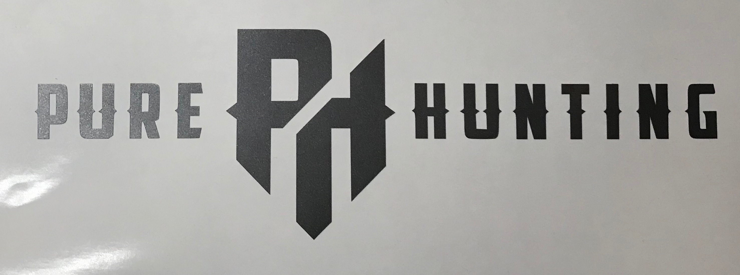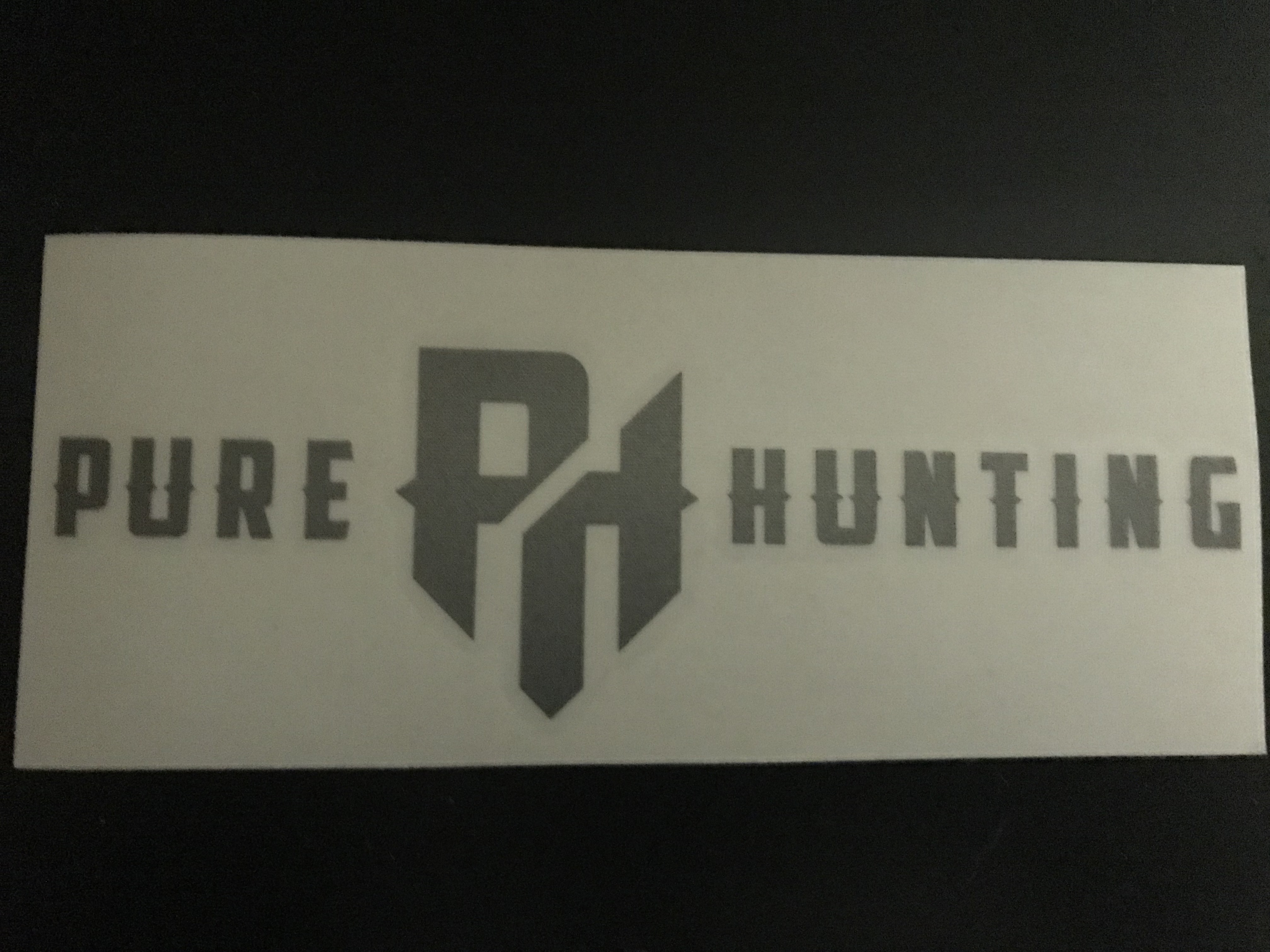 silver metallic Pure Hunting sticker. 2x6 inches. These look great on mirrors, vehicle glass or on computer covers!